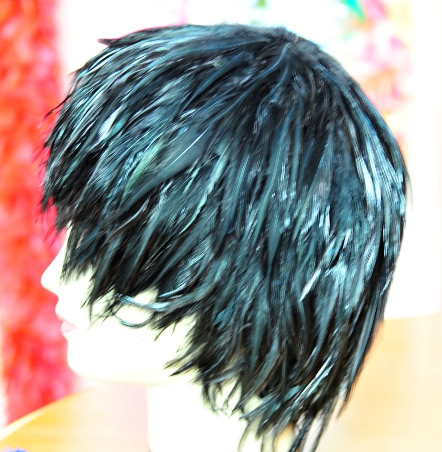 Make a bold statement with this stunning handmade feather wig, crafted using premium Hackle Rooster feathers—sourced from the neck cape of roosters. These feathers are naturally narrow, pointed, and soft, with an iridescent sheen that enhances the vividness of each hand-dyed color.